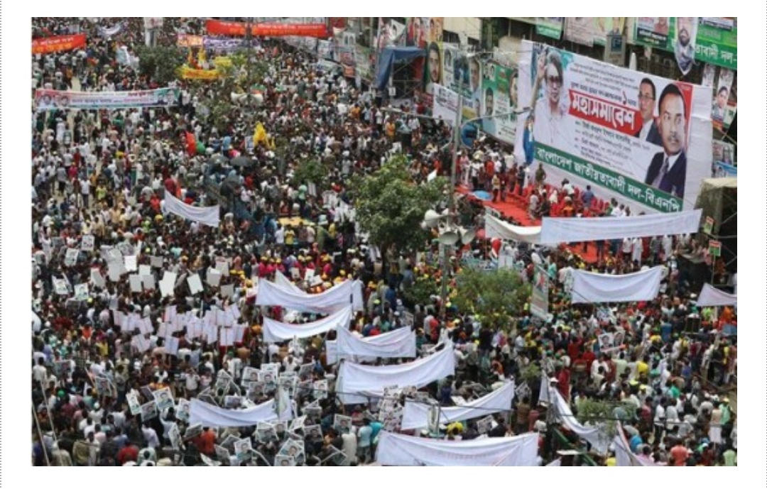 সকাল থেকেই নেতা-কর্মীরা খণ্ড খণ্ড মিছিল নিয়ে নয়াপল্টনে আসতে শুরু করেছে। মঞ্চে আশপাশে নেতা-কর্মীর ভিড় বাড়ছে। সাদা, নীল, লাল, সবুজ ও হলুদ টুপি মাথায় হাজার হাজার নেতা-কর্মী মুহুর্মুহু করতালি দিয়ে স্লোগান দিচ্ছেন।