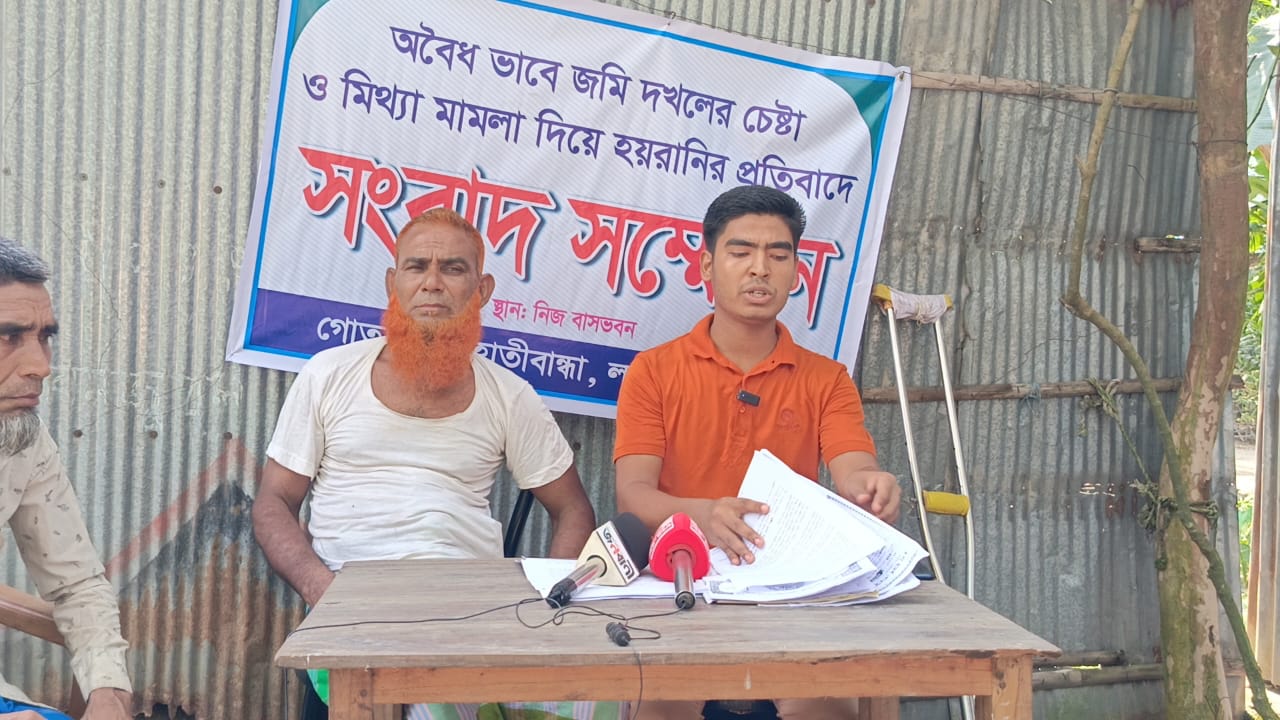 হাতীবান্ধায় অবৈধভাবে জমি দখলের চেষ্টা ও মিথ্যা মামলার প্রতিবাদে সংবাদ সম্মেলন