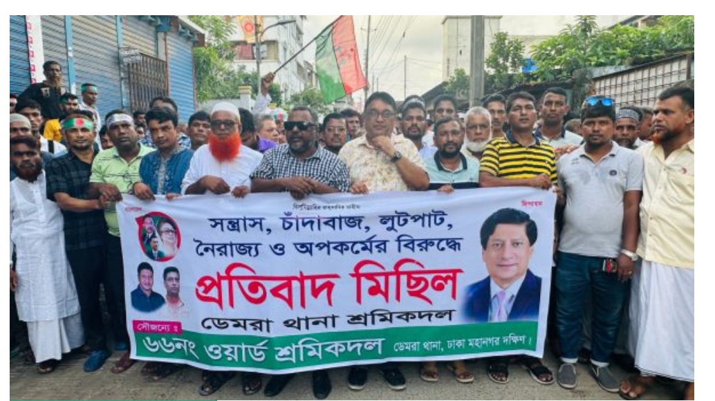 সন্ত্রাস, নৈরাজ্য, চাঁদাবাজ, দখলদারের বিরুদ্ধে ডেমরা থানা শ্রমিক দলের বিক্ষোভ মিছিল