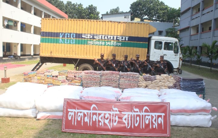 বিজিবি কর্তৃক করোতোয়া কুরিয়ার সার্ভিসের কার্গো কভার ভ্যান সহ ৩ কোটি ১৯ লক্ষ টাকা মূল্যের ভারতীয় মালামাল আটক।