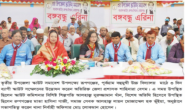 ঢাকা : তৃতীয় উপজেলা স্কাউট সমাবেশ উপলক্ষ্যে রূপগঞ্জের, পূর্বগ্রাম বহুমুখী উচ্চ বিদ্যালয় মাঠে ৩ দিন ব্যাপী স্কাউট সম্মেলনের উদ্ভোধন করেন