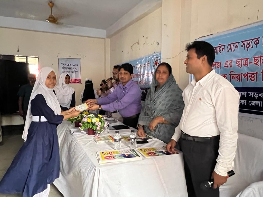 ঢাকা জেলা বিআরটিএ’ র উদ্যোগে ছাত্র-ছাত্রীদের মাঝে সড়ক নিরাপত্তা গণসচেতনামূলক কর্মসূচি পালন