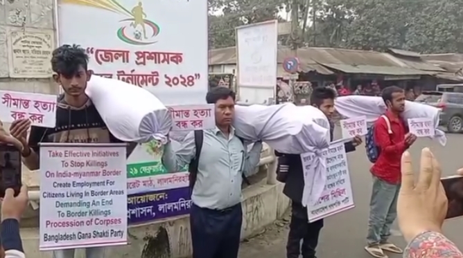 সীমান্তে হত্যা ও আগ্রাসন বন্ধের দাবীতে প্রতীকী লাশের মিছিল